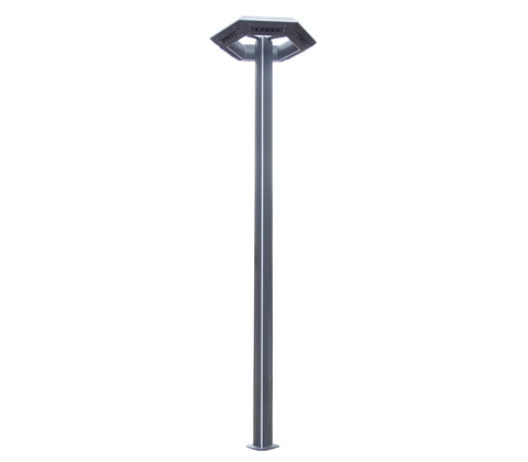 * 上裝庭院燈燈具采用三邊形鋁型材拼接為6邊形燈體,六面發(fā)光LED發(fā)光;